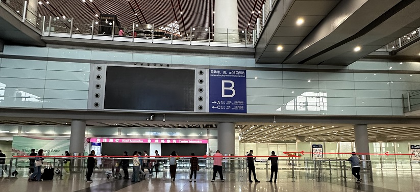 When you go out of the cabin, you will see the following sign, just please follow the "Temporary Entry Permit Application" to go
